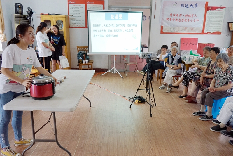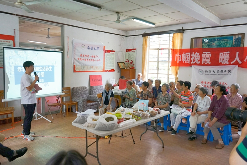 为贯彻落实《健康中国行动(2019-2030)》,7月17日,我院“精准用药·铸魂育人”健康中国志愿服务实践团走进南通市“巾帼晚霞”志愿服务站。yl8858永利集团党委常委、副校长侯文华率队亲临活动现场,我院党委书记徐建、院长朱卫忠、党委副书记、副院长顾亚梅参加活动。