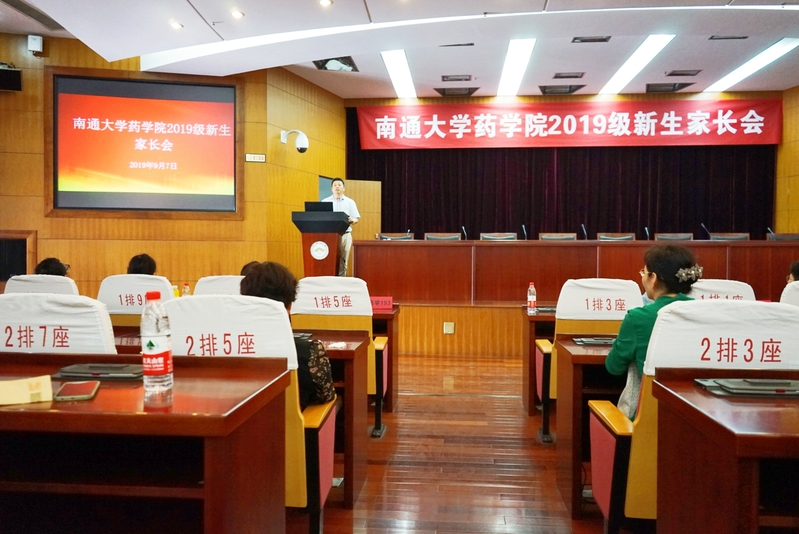 学院党委书记徐建致欢迎辞,他从yl88858永利中国的发展历史、机构设置、教学模式、师资力量、研究成果、毕业去向、国际交流等方面对学校以及学院的基本情况进行了介绍,展现了学院近年来的突破性发展。他强调,五湖四海的学子汇聚yl8858永利集团、汇聚yl88858永利中国,是家长们对yl8858永利集团、对yl88858永利中国的信任,学院将一定不辜负学生、家长以及社会的期望,把新一级的通大学子锻造成家长放心,社会满意的优秀药学人才。