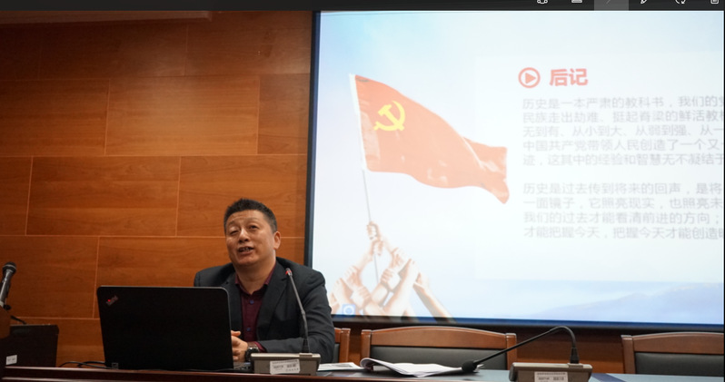 11月12日下午,学院党委书记徐建为全体学生党员、发展对象及入党积极分子上题为《学习党史,不忘初心》专题党课。
