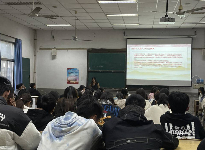 学院党委副书记副院长顾亚梅书记从学生会成员职责定位出发,对当前团委学生会工作提出了要求与期望。她要求要认真学习党中央最新文件、会议精神,并鼓励学生稳固政治站位,重视思想建设,扎实团学工作,敢于责任担当,要经风雨,见世面,长才干。院学生会主席顾韫慧进行领学,从两个“确立”、三个“需要”、五大“意义”、十个“坚持”等方面带领大家学习十九届六中全会精神。