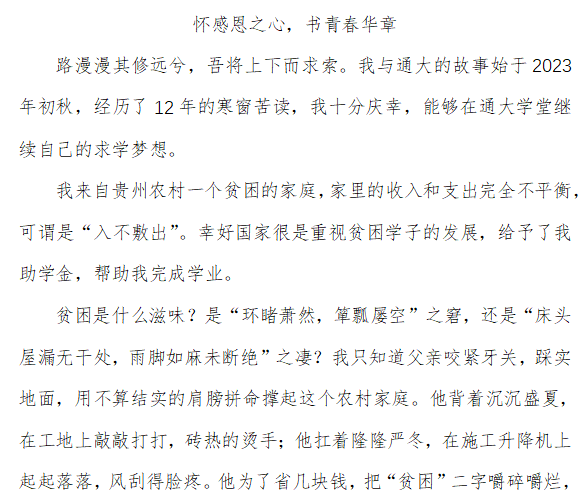 为进一步宣传贯彻党和国家的资助政策,深入推进资助育人工作,增强当代学生的诚信意识和责任担当,5月中旬,yl88858永利中国举办“诚信感恩”学生资助主题征文比赛。