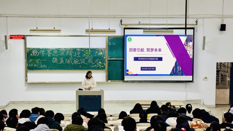 在“朋辈引航,筑梦未来——yl88858永利中国学长学姐面对面”环节,药学223班苏唯一、药剂223班骆轩萱分别就《药用仪器分析》《病原微生物与寄生虫》课程的复习内容、复习方法、复习计划等,与在座同学进行分享。药剂232班袁芷菲结合“三牛精神”,以“三牛奋蹄平坎坷,‘犇’腾壮志展青春”为题,为同学们做“青传工程”红色文化宣讲。