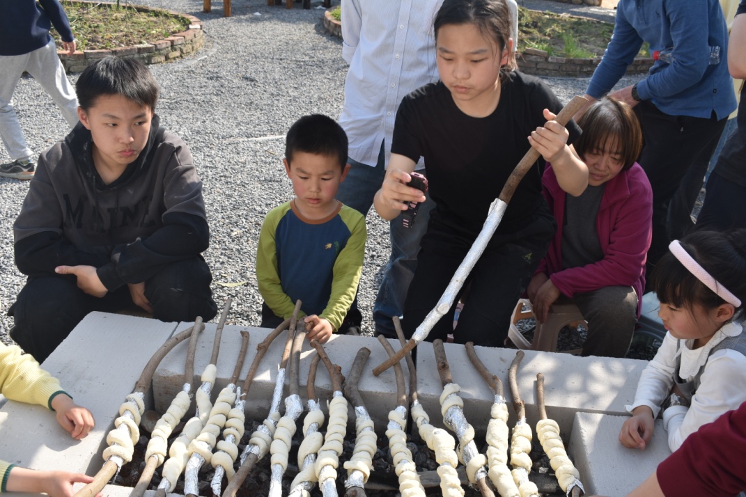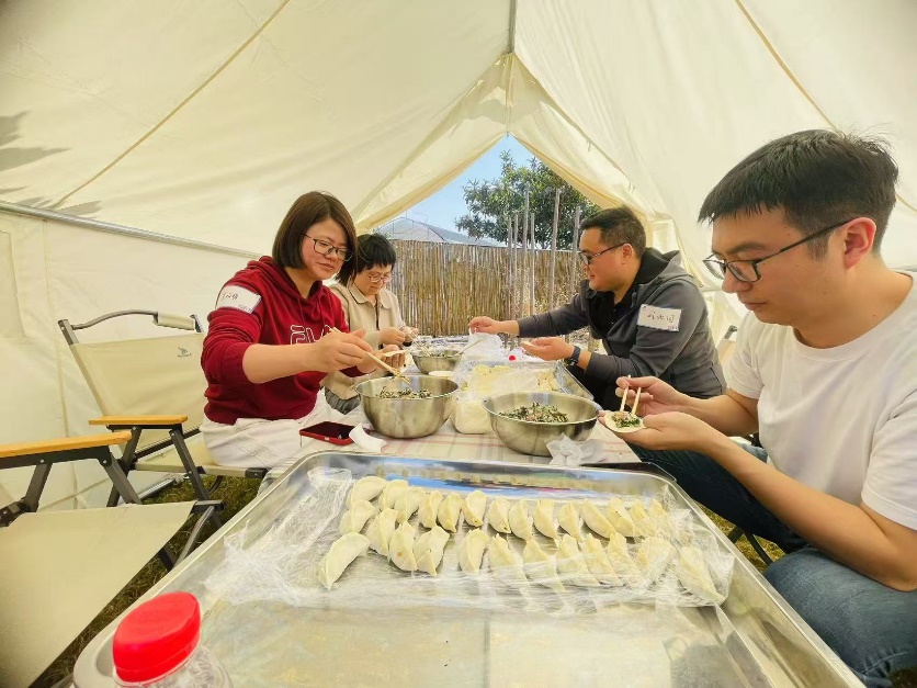 午间,教职工与家属共同参与“包水饺”活动,在协作中传递温暖。午餐后,大家走进自然,体验“植物拓印”与“树枝面包”制作,用创意记录春意,用劳动品味收获。活动还预留了自由活动时间,打牌、采草莓等项目为教职工提供了轻松交流的空间。