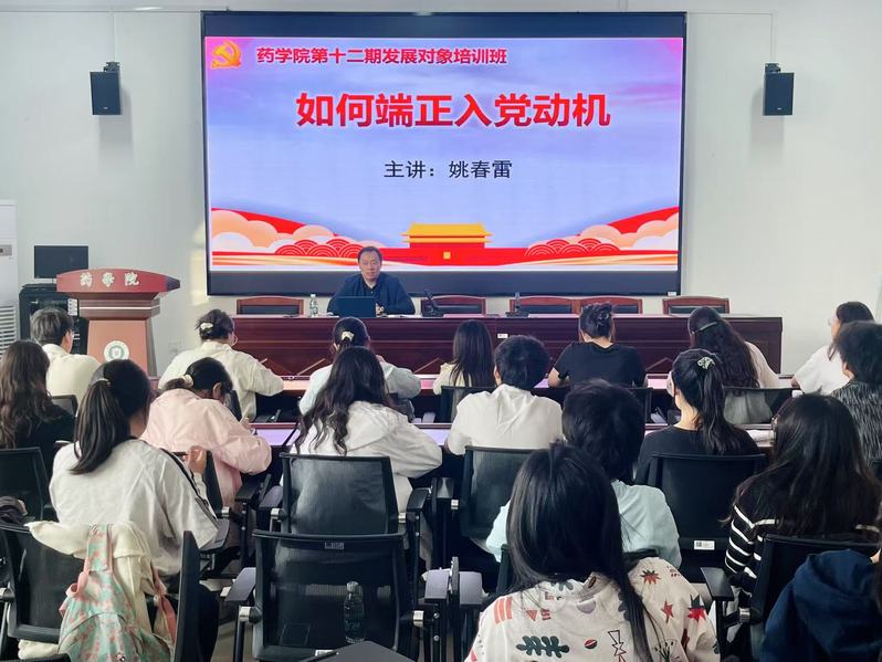本次培训采取集中授课、分组研讨、线上自学与结业考核相结合的方式。姚春雷以《如何端正入党动机》为题作专题辅导,结合党史学习教育,讲述优秀党员事迹,以榜样力量激发学员的入党热情,鼓励学员主动参与社会实践,在服务群众中深化对“为人民服务”宗旨的理解。包小峰以《弘扬科学家精神——为科技强国凝聚磅礴力量》为题作专题辅导,报告紧扣时代主题,立足药学学科特色,深入阐释了科学家精神的内涵与时代价值,号召学员以科学家精神为指引,勇担科技报国使命,为建设科技强国贡献青春力量。学院党委副书记、副院长徐红波作《深入学习领会党的二十届三中全会精神》专题辅导,他从全会召开的时代背景出发,强调了学习贯彻党的二十届三中全会精神对于当前和今后一个时期党和国家事业发展的重要性,鼓励学员将全会精神转化为学习、工作和生活的实际行动。副院长凌勇以《学新党章 争做新时代合格党员》为题,带领学员学习新党章,他强调党的二十大对党章进行的修改,是党的理论创新、实践创新、制度创新成果,新党章是全党的根本遵循和行为规范,要求全体学员做思想上的清醒人、政治上的明白人、学习上的带头人。副院长黄超以《中国故事——解码中国式现代化》为题作专题报告,围绕中国式现代化的理论内涵、实践路径与时代价值展开讲解,报告以鲜活案例与深刻理论相结合,为学员理解国家发展大局、锚定个人奋斗方向提供了指引。