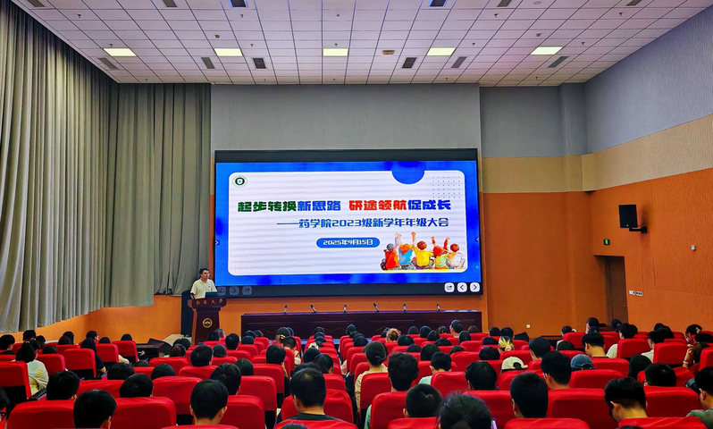 起步转换新思路,研途领航促成长。此次年级大会顺利召开,为2023级学生明确了当前工作,传授了学习经验,擘画了前行方向。相信同学们将以饱满的热情开启新学期,奋进新征程,在药学领域绽放光彩,用自己的专业所学,为“健康中国”添智赋能。(文:陆昊、袁芷菲;图:宗逸扬)