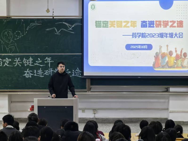 锚定关键之年,奋进研学之途。此次年级大会的顺利召开,为2023级学生明确了当前工作,传授了学习经验,规划了前行方向。相信同学们将以饱满热情投身学习与工作,在药学领域展现风采,用自己的专业所学,为“健康中国”贡献智慧和力量。(文:袁芷菲;图:于心玥)
