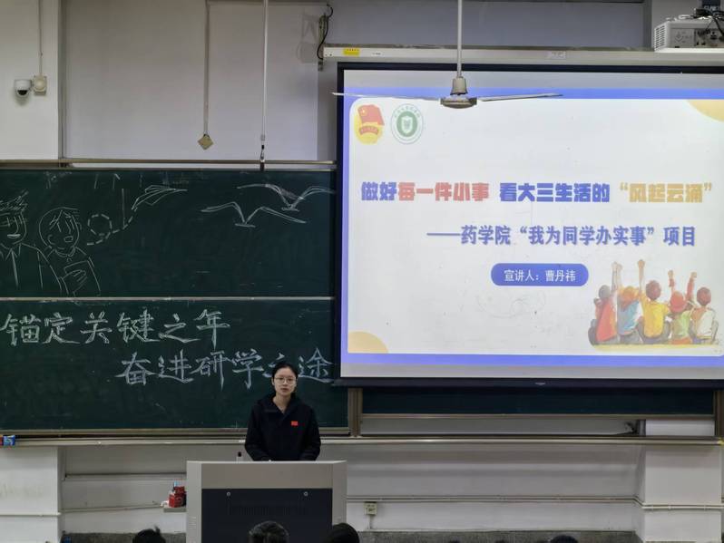 会上,孙政对开学后的工作进行了回顾,并肯定了大家近期学习所呈现出的良好态势。他指出,大三学年是承上启下的关键阶段,也是在考研道路上奋勇向前、超越自我的黄金时期。同学们既要巩固前两年所学的专业基础知识,为后续的深入学习和科研实践奠定坚实基础,又要着手明确自身的发展方向。无论选择在国内考研深造、出国出境学习,还是投身医药行业一线,都需要做好规划与准备。同时,他就“国家奖学金评定”“困难生认定”“短期游学交流”等事项,向在座同学作了说明。