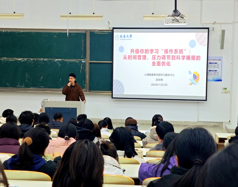 为帮助学生掌握科学的压力管理方法,全面部署学期末学习与安全工作,11月27日,yl88858永利中国举办2025级心理健康讲座暨年级大会。会议特邀学校心理健康教育研究与服务中心赵学翔老师担任主讲。